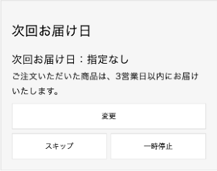 変更締め切り次回のお届け日程・スキップ・解約などの変更手続きはこの日まで可能です。