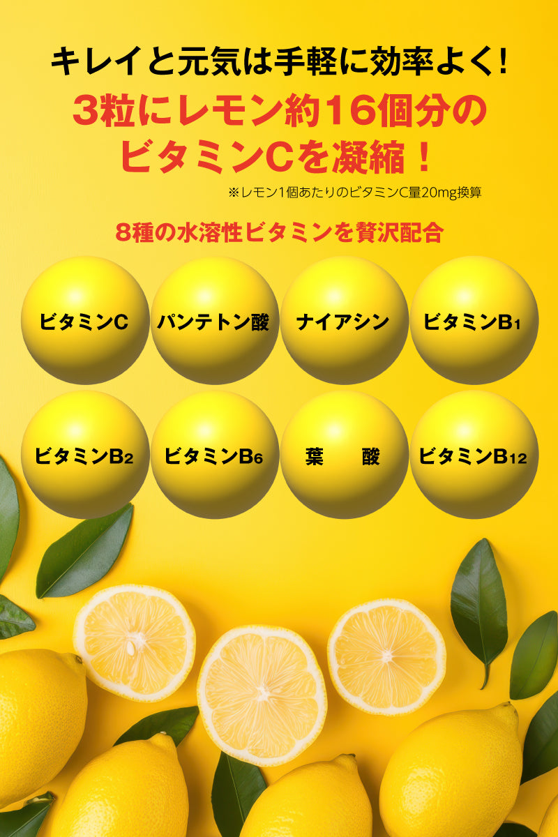 ▼3粒にレモン約16個分のビタミンCを凝縮!